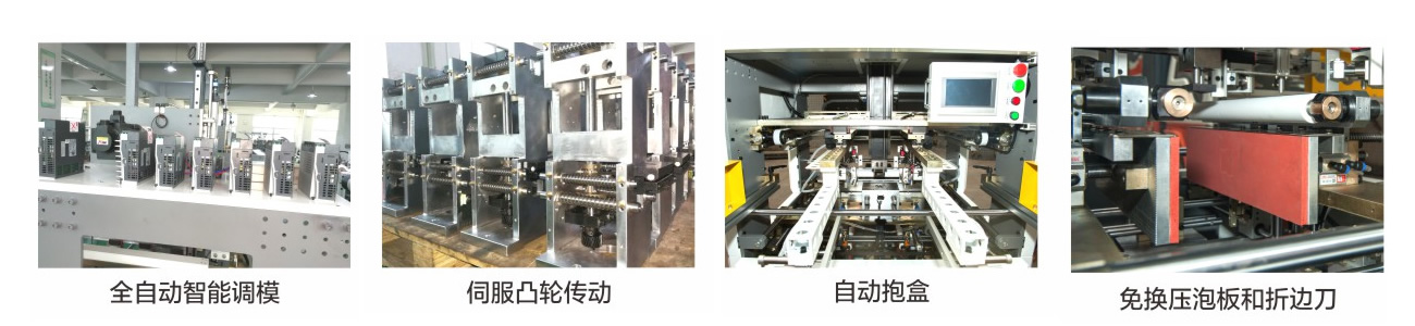 3.免換壓泡板和折邊刀:該機已經(jīng)裝好固定長度的壓泡板和折邊刀,適應任意尺寸紙盒的生產(chǎn),無需更換拆卸,節(jié)省了轉板時間和成本。
